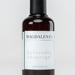 Magdalena's Kühlendes Körpergel bietet wohltuende, angenehm kühlende und entspannende Pflege für Haut, Muskeln und Gelenke. Die äußerst smarte Formulierung mit hochkonzentrierter pflanzlicher Hyaluronsäure und einem wohldosierten Cocktail an ätherischen Ölen, Kräuterextrakten sowie hochwertigen Absolues unterstützt besonders beanspruchte Haut- und Gelenkspartien in der Regeneration, spendet Feuchtigkeit und Elastizität. Arnika, Wilde Malve und Hagebutte fördern die Durchblutung, wirken reizlindernd und besänftigen Irritationen.
