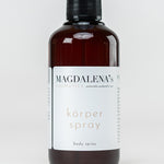 Magdalena's Körperspray ist ein natürliches Deodorant, das frei von Aluminiumsalzen effektiv vor unangenehmer Geruchsbildung schützt. Sein pflanzlicher Wirkstoffkomplex mit Extrakten von Bergkräutern, Ringelblume und einer Essenz aus Cassiaöl neutralisiert geruchsbildende Bakterien, ohne die Poren zu verschließen. Hagebutte, Wilde Malve und Bergarnika besänftigen die Haut und schenken Ihr angenehme Frische.