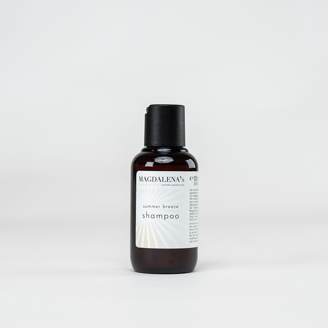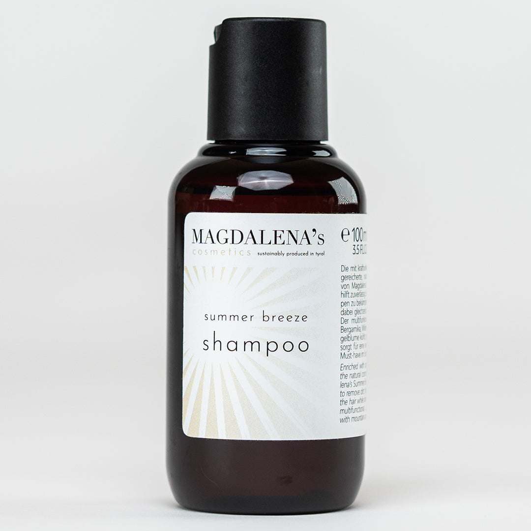 Die mit kraftvollem Zitroneneukalyptusöl angereicherte, naturkosmetische Pflegeformel von Magdalena’s Summer Breeze Shampoo hilft zuverlässig, Schmutz zu entfernen, Schuppen zu bekämpfen, die Haare zu stärken und dabei gleichzeitig sanft zur Kopfhaut zu sein. Der multifunktionale Wirkstoffkomplex mit Bergarnika, Wilder Malve, Hagebutte und Ringelblume kühlt, regeneriert, energetisiert und sorgt für eine schwungvolle Haarstruktur – ein Must-have im Sommer!