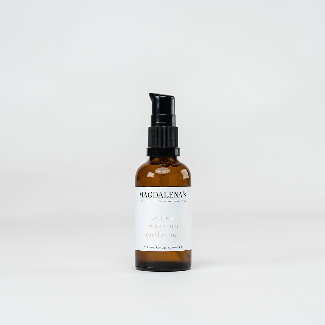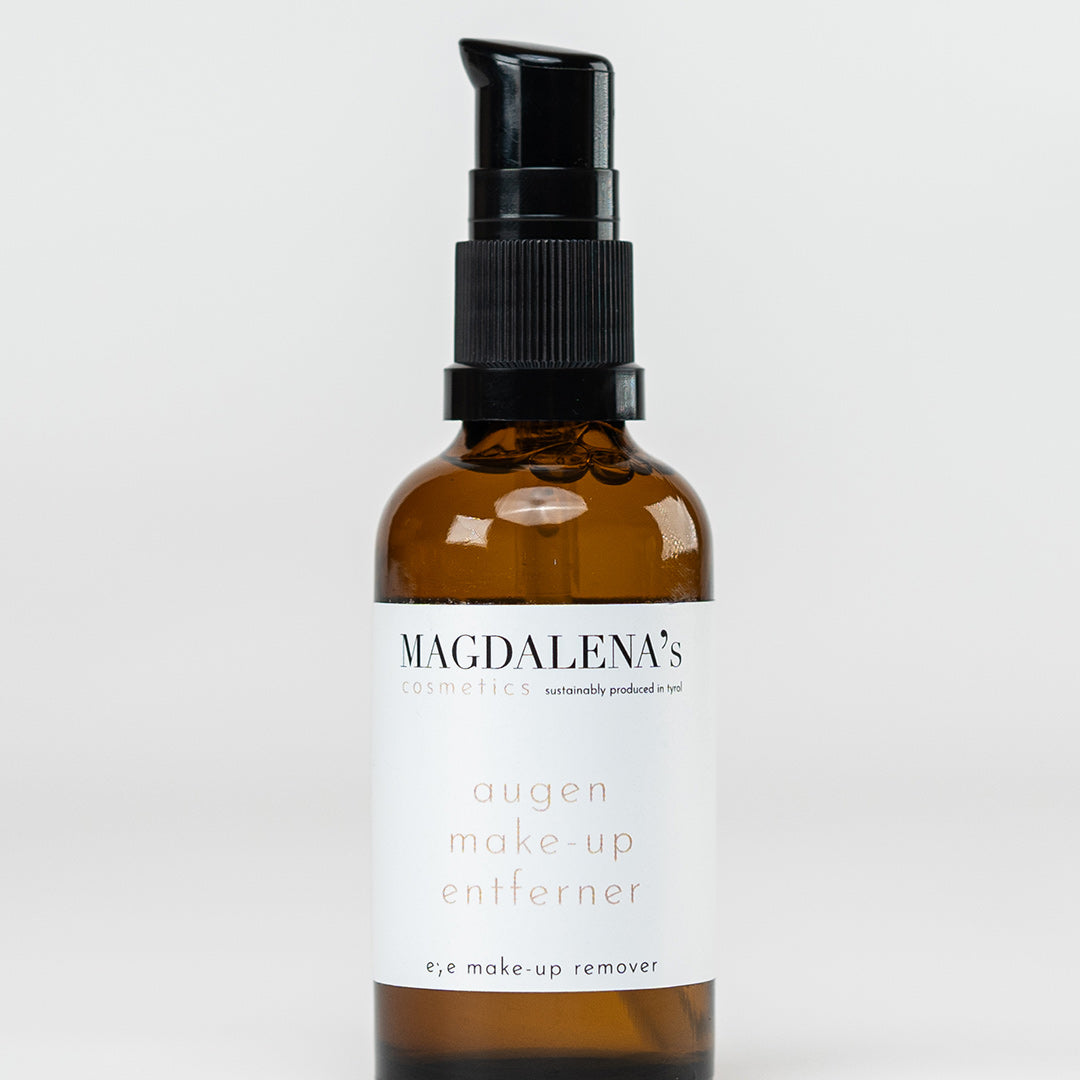 Magdalena's Augen-Make-up-Entferner entfernt gründlich Mascara und Make-up und ist gleichzeitig sanft zur empfindlichen Augenpartie. Die besonders schonende und augenfreundliche Formulierung wirkt hautberuhigend und versorgt die sensible, feine und fettarme Haut am Auge mit entspannender Pflege. Die Haut kann wieder atmen, und Augen, Wimpern sowie die Augenpartie fühlen sich gut gereinigt an.