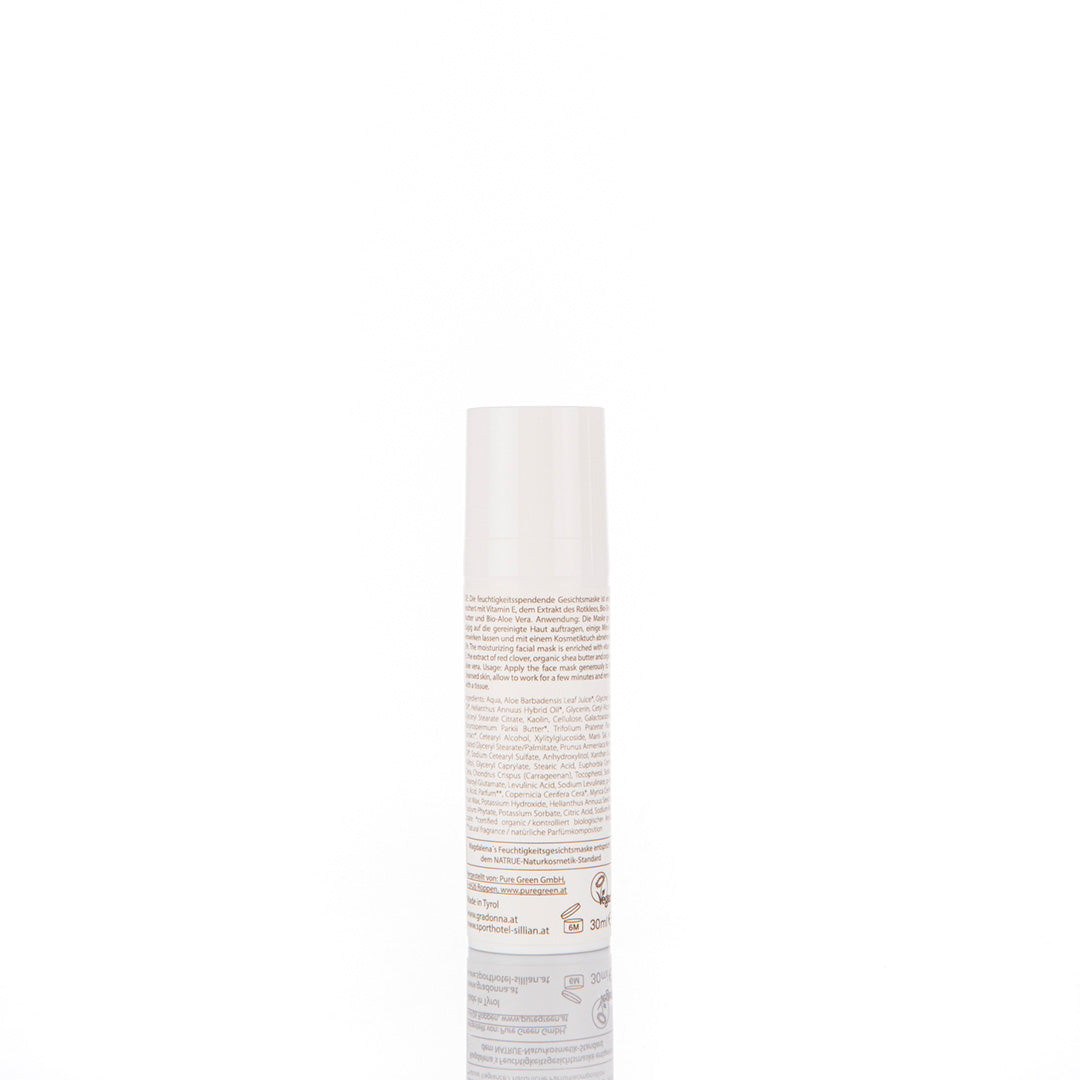 Magdalena’s feuchtigkeitsspendende Gesichtsmaske verwöhnt und pflegt die Haut reichhaltig mit Bio-Sojaöl, Bio-Sonnenblumenöl, Bio-Sheabutter und Bio-Aprikosenkernöl. Die Formulierung mit Bio-Rotklee-Extrakt und Glycerin versorgt die Gesichtshaut dabei nachhaltig mit einer Extraportion Feuchtigkeit für strahlend schön gepflegte Haut.