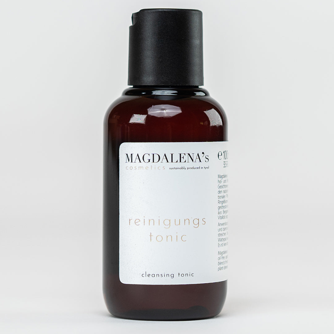 Magdalena's Reinigungstonic ist ein alkohol- und ölfreier, superschnell erfrischender Gesichtsreiniger mit einer Mischung aus milden natürlichen Säuren und einem multifunktionalen Pflanzenkomplex. Wilde Malve und Ringelblume besänftigen empfindliche und gestresste Haut, während das dynamische Duo aus Bergarnika und Hagebutte für sichtbare Vitalität sorgt.
